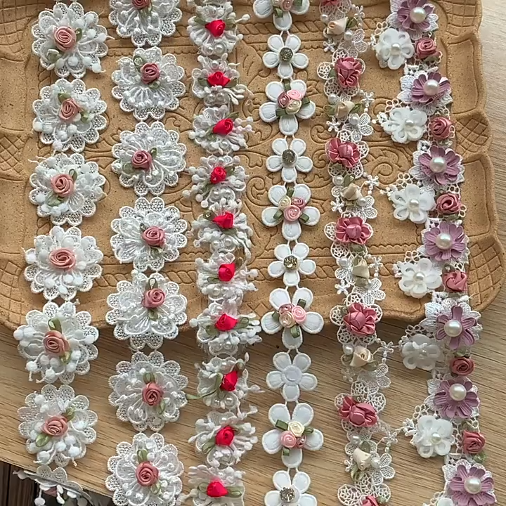 Beaded Flower Lace Trim Wedding Decoration BT0071