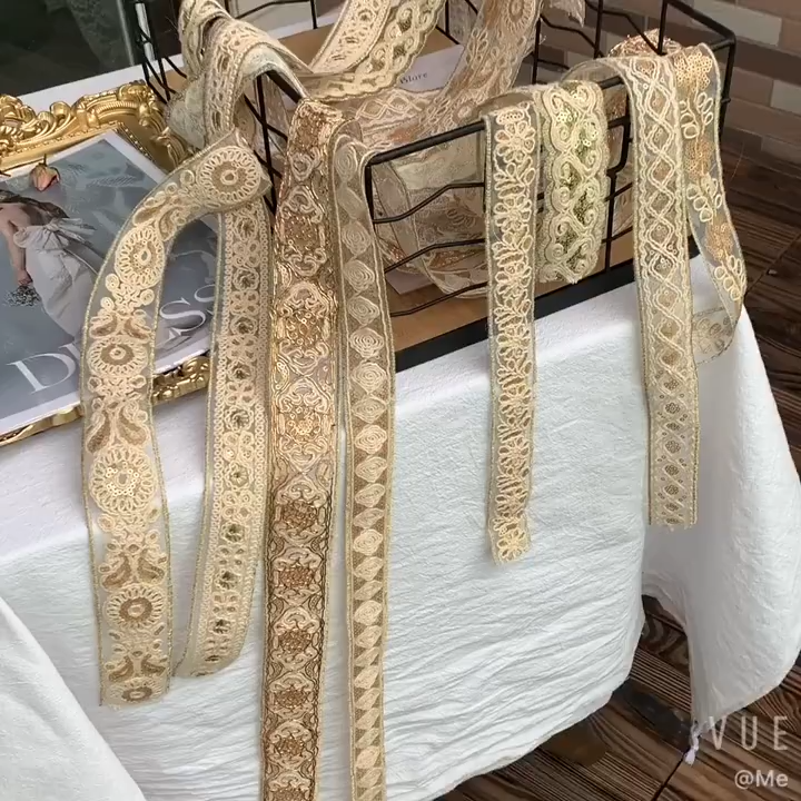 Gold Embroidery Sequin Beaded Lace Trim BT0075