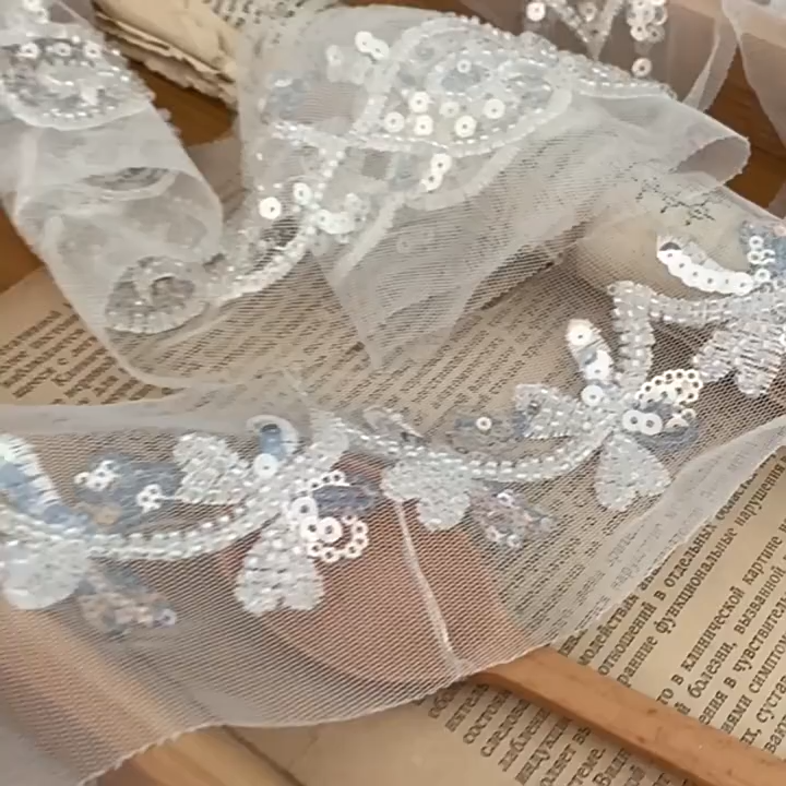 Luxury Silver Sequin Beaded Lace Trimming BT0079