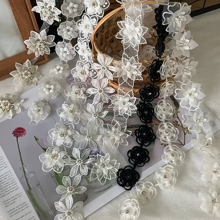 3D Rhinestone Beaded Lace Trims Fabric BT0033