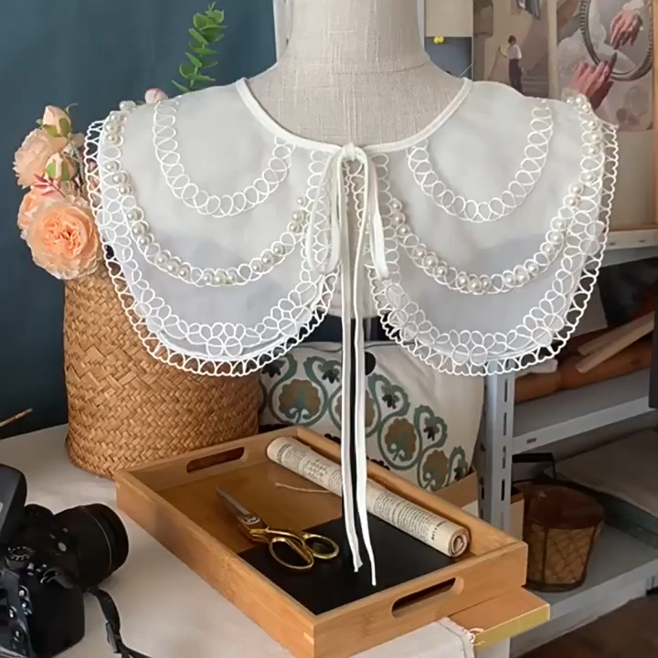 Pearl Lace Embroidery Sweater Collar LC0013This item sold per piece.Features and Specs:Elasticity: NoneColor: whiteSize: details as shown on option picture.Specification: order 1= 1 piece.